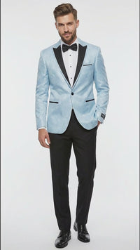 Men’s Baby Blue Tuxedo Blazer with Black Lapel – Formal Dinner Jacket for Wedding, Prom and Evening Events in Sky Light Blue Color