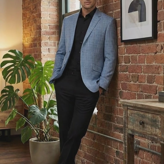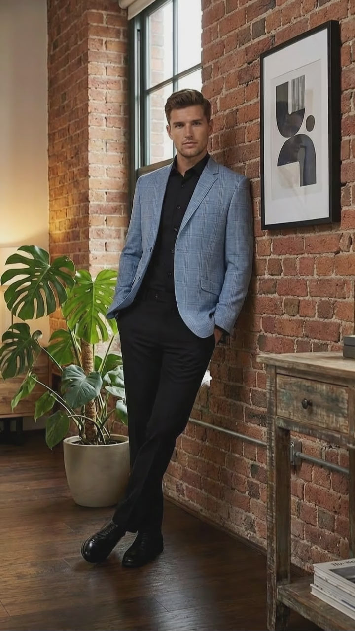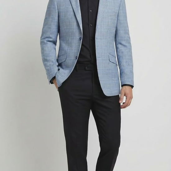 - Men’s light blue checkered blazer and sport coat