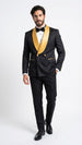 Make a bold and powerful impression with this men’s black and gold jacquard tuxedo suit, designed to deliver exceptional style and elegance for the most prestigious occasions. Crafted from premium jacquard fabric, this tuxedo features an intricate textured pattern that enhances its luxurious appearance. The deep black body is paired with a striking gold satin shawl lapel, creating a refined and captivating contrast suitable for weddings, galas, proms, and red-carpet events.