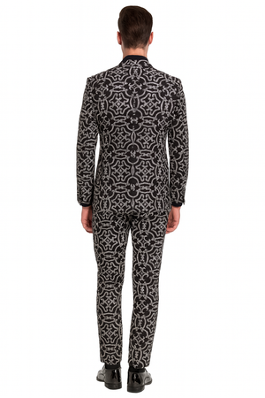 Men’s Black and Silver Sequin Tuxedo – Slim Fit 2-Piece Party and Wedding Suit with Sparkling Design- Black and White Color