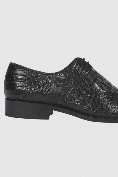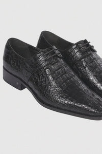 Men’s Black Genuine Full Crocodile Leather Lace-Up Dress Shoes