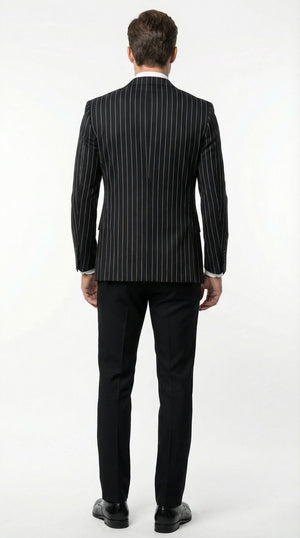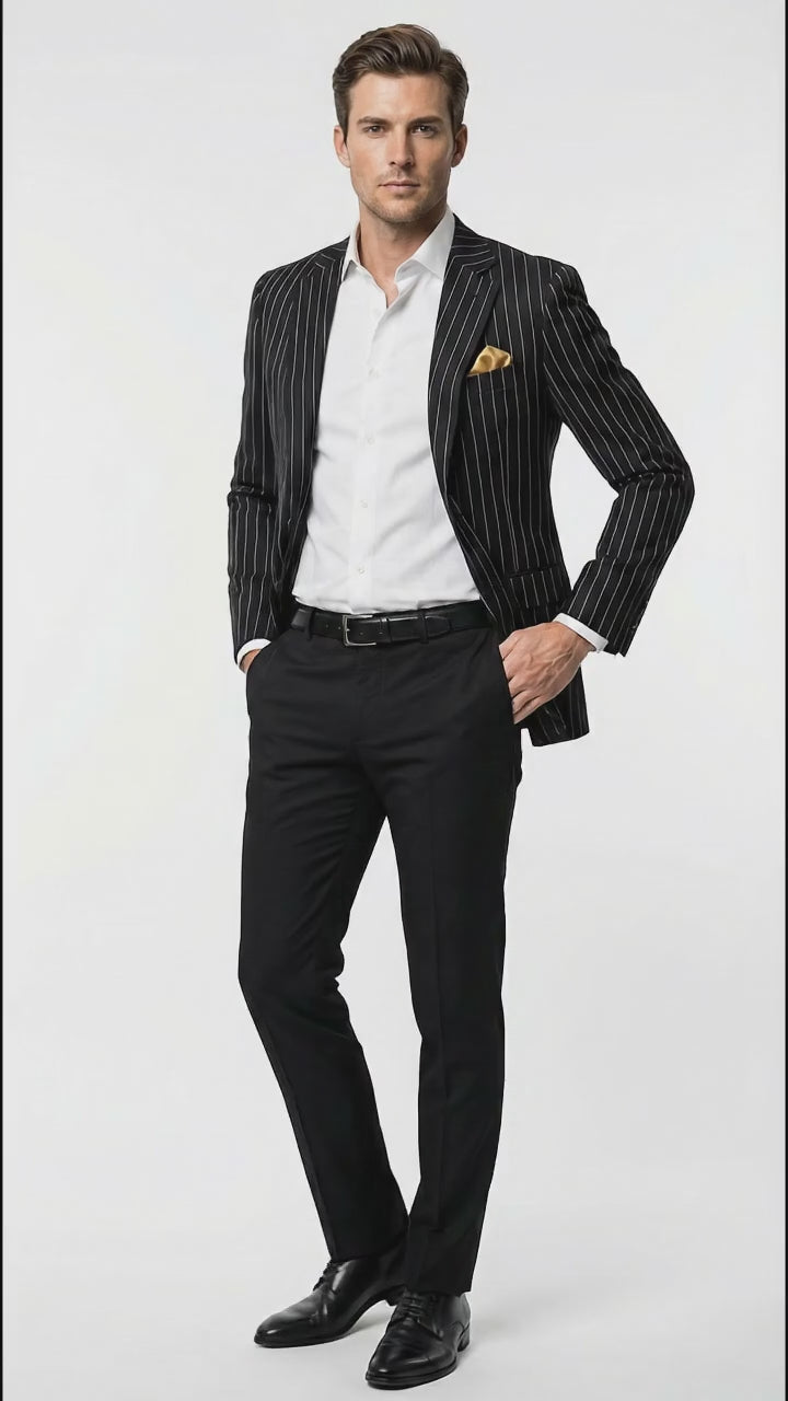 Men’s Black Pinstripe Blazer – Classic Tailored Formal Jacket for Business, Office and Evening Wear