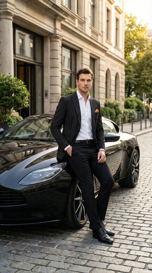 This men’s black pinstripe blazer is an essential addition to any formal wardrobe, combining timeless design, versatility, and professional style.
