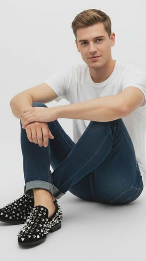 These black and silver studded loafers redefine luxury footwear with their bold design and exceptional comfort. Whether paired with a suit, tuxedo, or casual blazer, they add the perfect finishing touch for men who want to stand out with confidence and style.