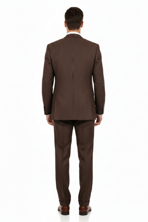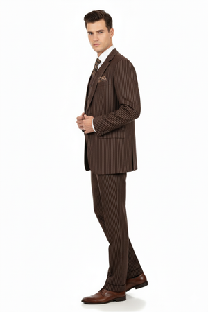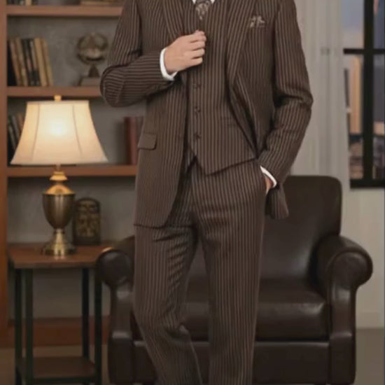 Men’s Brown Pinstripe 3-Piece Suit – Classic Business and Formal Wear with Vest