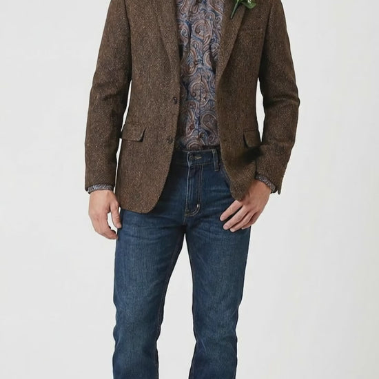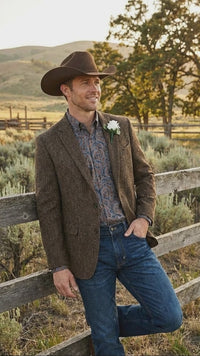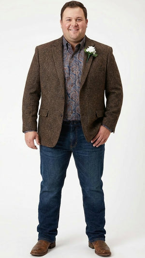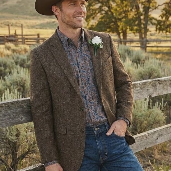 Men’s Brown Western Tweed Herringbone Blazer Jacket – Classic Cowboy Style Sport Coat for Wedding Party