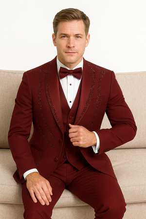 Men’s Burgundy Italian Wool 3-Piece Modern Formal Tuxedo
