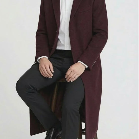 Men’s Burgundy Long Coat, Burgundy Overcoat for Men, Classic Fit Men’s Coat, Wool Blend Overcoat, Men’s Formal Winter Coat
