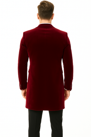 Men’s Burgundy Tuxedo in Velvet Long Blazer – Victorian Cutaway Tuxedo Suit 1920s Gangster Style Long Jacket with Black Pants