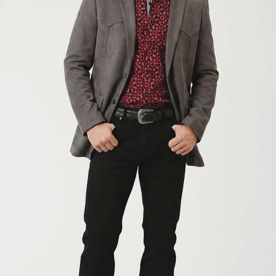 Upgrade your wardrobe with this men’s charcoal western faux suede blazer, designed for timeless cowboy style with a modern edge. Crafted from premium faux suede fabric, this blazer delivers a soft, durable feel while maintaining a polished and rugged western look.