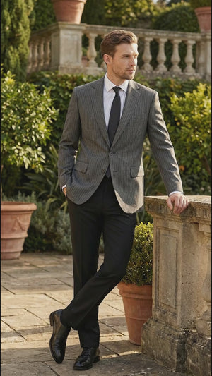 This men’s grey pinstripe blazer is a versatile and timeless addition to any formal wardrobe, offering refined style and dependable performance for every professional setting.