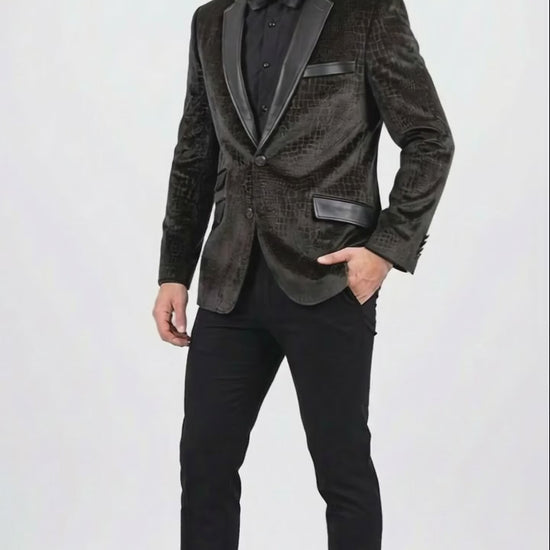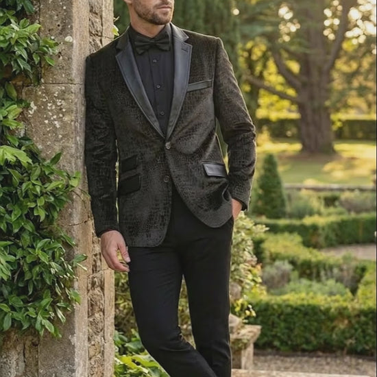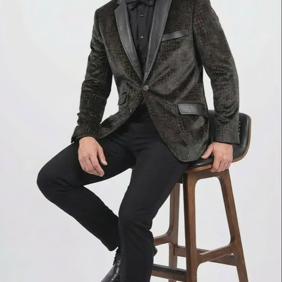 Men’s Crocodile Alligator Exotic skin Texture Blazer – Slim Fit Designer Jacket with Satin Lapels for Formal and Party Wear in Black Color