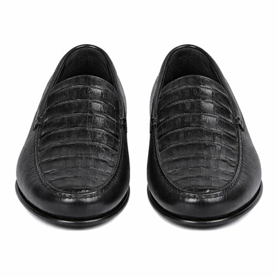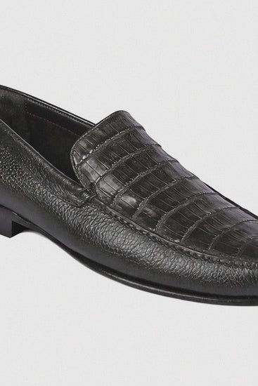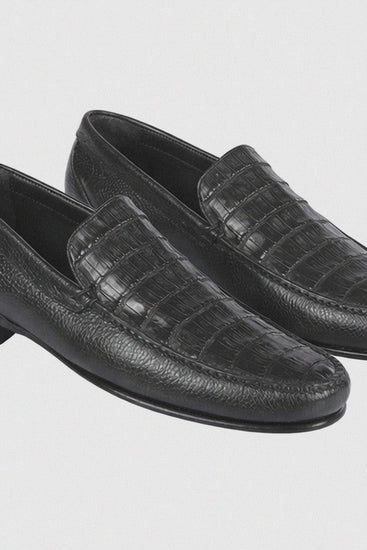 Men’s Executive Black Slip-On Shoes – Genuine Crocodile & Calfskin Leather