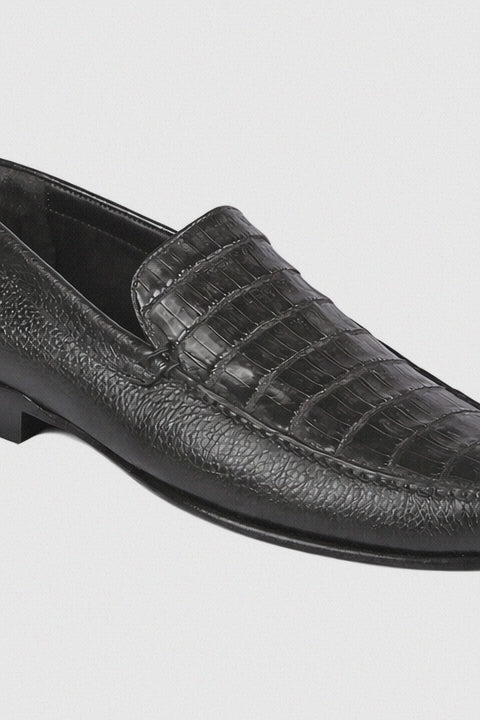 Perfect for executives, entrepreneurs, and men with refined taste, these shoes embody the ultimate statement of success. Pair them with a tailored charcoal or navy suit for boardroom authority, or style them with black tuxedo trousers for an evening of elegance. The combination of crocodile and calfskin delivers both strength and sophistication, making these slip-ons a timeless investment in premium menswear.