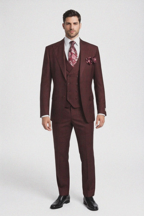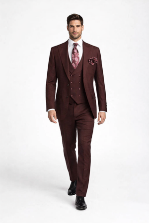 Rossiman Men's Rust Slim Fit Suit – 3-Piece Set with Double-Breasted Vest & Flat Front Pants