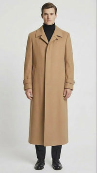 Upgrade your wardrobe with this premium men’s full-length camel overcoat, designed to deliver timeless sophistication and versatile style. Featuring a smooth Microfiber-blend Maxi Duster Coat fabric and a rich camel color, this long coat offers unmatched elegance for both formal and everyday wear.