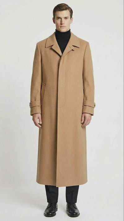 Men’s Full-Length Camel Overcoat – Classic Long Microfiber-Blend Coat for Winter and Formal Wear Maxi Duster Coat