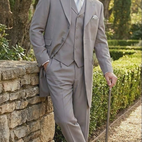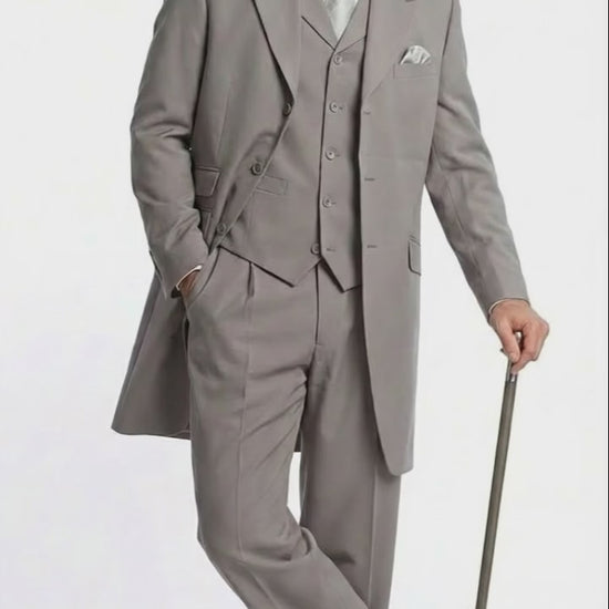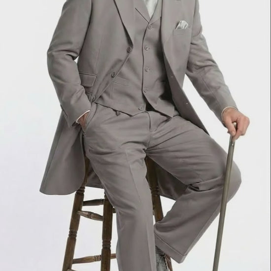 Men’s Gray Zoot Suit with Matching Hat and 1920s Shoes | Grey Vintage Wedding and Party Three Piece Suit