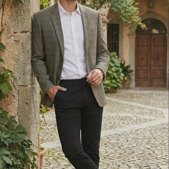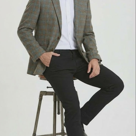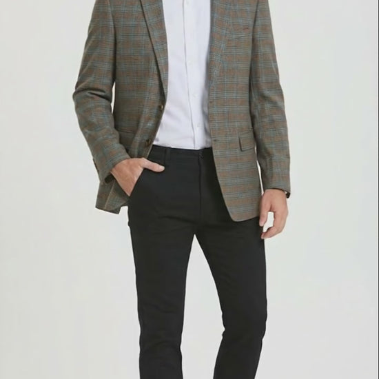 Men’s Green Brown and Teal Plaid Sport Coat – Tailored Fit Check Blazer Jacket - Tartan Sportcoat