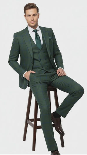 Men’s Green Plaid 3-Piece Suit – Classic Check Slim Fit Suit for Weddings, Church, and Formal By Rossiman