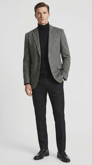 Step into a sharp, modern look with this Men’s Grey Tweed Herringbone Sport Coat & Blazer Set, featuring a refined charcoal grey jacket paired with black trousers for a clean, confident contrast. The textured herringbone tweed pattern adds understated depth, making it an easy upgrade from everyday suiting while still staying polished and professional.