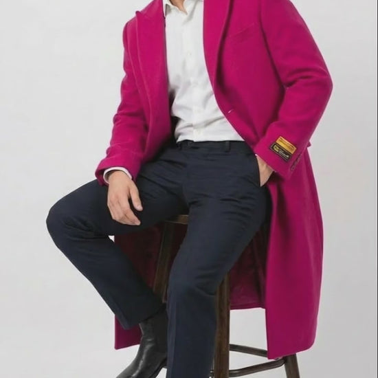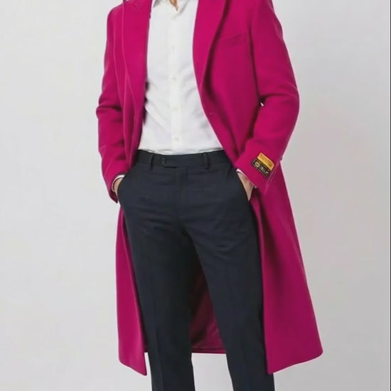 Men’s Hot Pink Wool Blend Overcoat – Topcoat Carcoat Winter Fabric