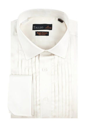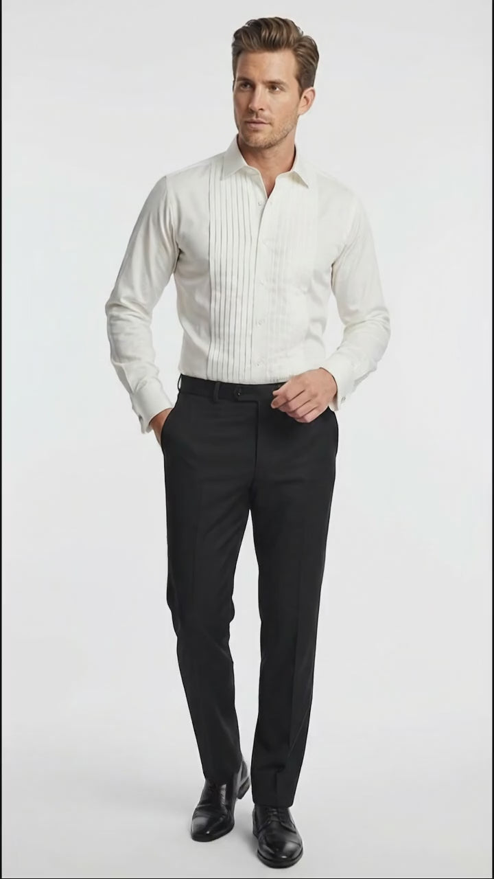 Men’s Ivory Cream Off White Pleated Tuxedo Dress Shirt | French Cuff Formal Wedding Shirt