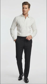 Whether you are the groom, groomsman, or a guest, this white pleated dress shirt is a timeless essential for any formal wardrobe.