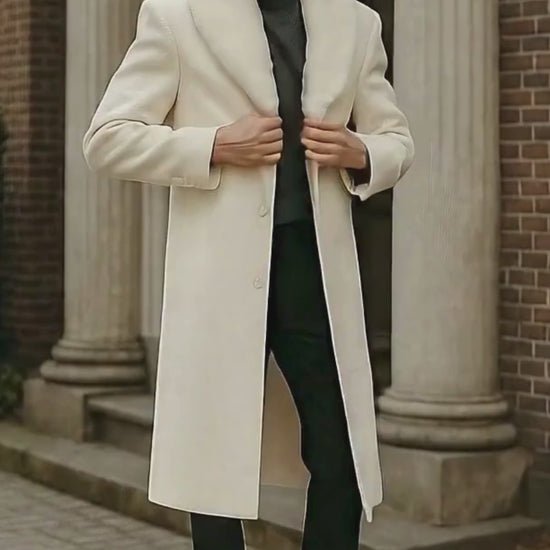 - Elegant Ivory Cream Off White full-length overcoat with premium finish