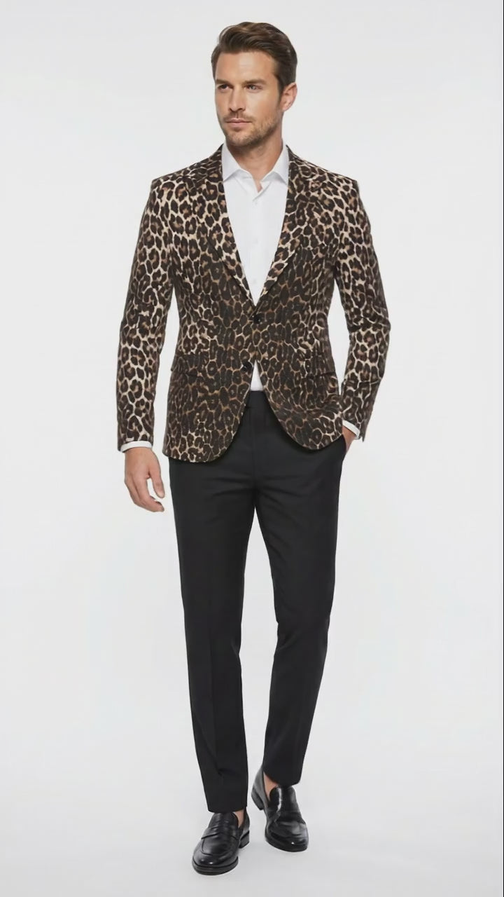Perfect for men who appreciate distinctive fashion with a modern edge, this leopard print blazer is ideal for those who want to stand out without compromising sophistication.