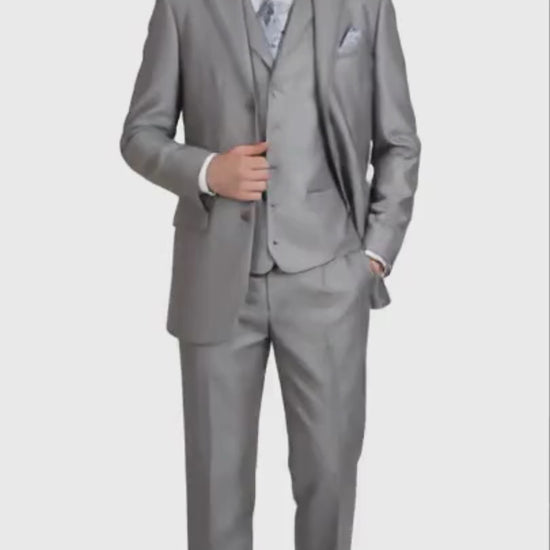 Rossiman Men’s Gray Shiny Sateen Suit – Sleek & Modern Formalwear