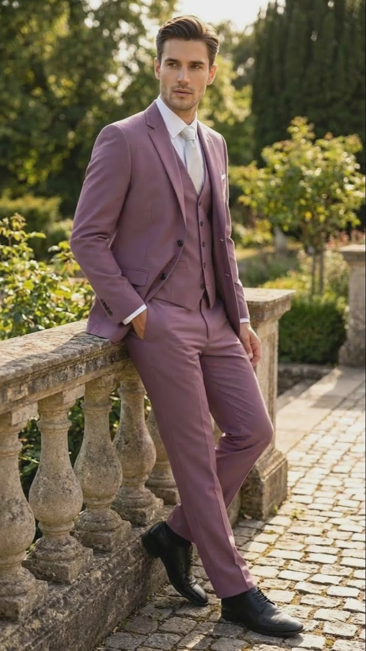 Crafted from premium-quality fabric with a smooth finish, this suit offers structured tailoring, clean lines, and all-day wearability. The contemporary mauve tone adds a sophisticated touch, making it a standout choice for weddings, receptions, formal events, business occasions, and upscale celebrations.