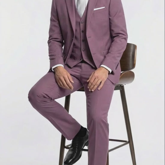 Make a confident statement with this Men’s Mauve Three-Piece Suit, designed for modern elegance and refined formalwear. Featuring a tailored blazer, matching vest, and coordinated trousers, this suit delivers a sleek slim-fit silhouette that enhances both style and comfort.