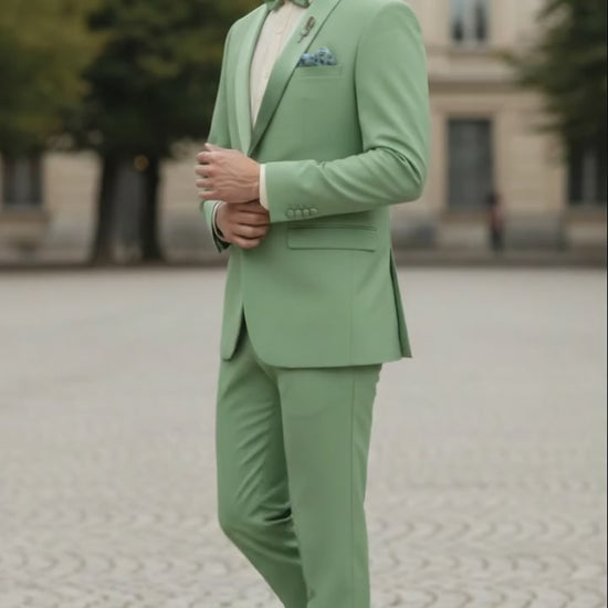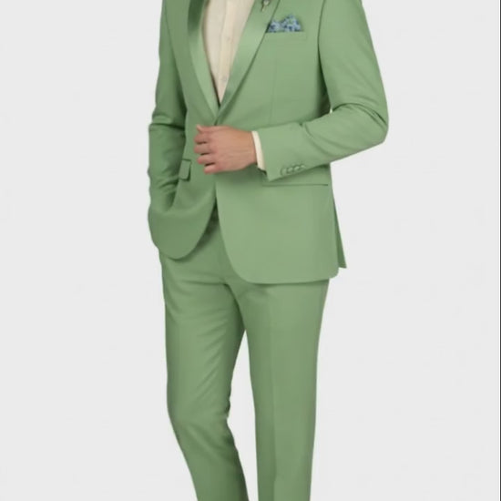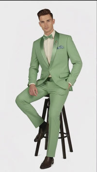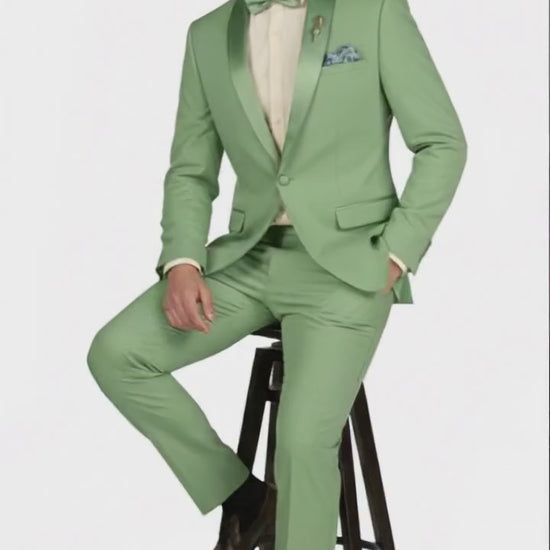 Men’s Mint Green Tuxedo – 2-Piece Formal Suit with Satin Shawl Lapel and Matching Bow Tie in Sage Green