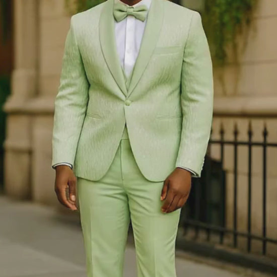 Men’s Mint Green Tuxedo Suit – Slim Fit Shawl Lapel with Matching Bow Tie in Sage Green Color - Light Green