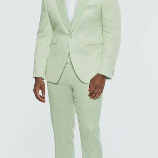 Step into confidence and style with this mint green slim fit tuxedo, a modern twist on classic formalwear that guarantees a memorable impression.