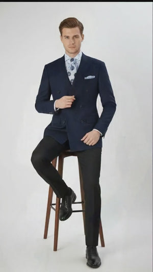 Bring timeless sophistication to your wardrobe with this men’s navy blue double-breasted suit, designed for elegance, style, and exceptional comfort. Crafted from a premium blended fabric, this suit features a smooth texture, structured fit, and excellent durability. The deep navy color creates a refined and versatile look suitable for weddings, business functions, dinners, and upscale social events.
