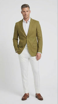 Sport Coat – Linen Fabric Summer - Upgrade your wardrobe with this men’s olive green blazer sport coat, designed to deliver a refined balance of casual and smart style. This versatile jacket is ideal for business casual settings, evening outings, social events, and modern everyday wear.