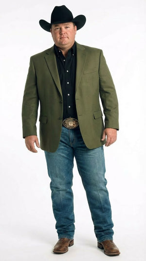 Upgrade your western wardrobe with this men’s olive green western blazer jacket, designed for a sharp cowboy-inspired look with modern versatility. The rich olive green color adds a bold and stylish touch, while the structured design and classic lapel collar create a clean, confident finish for everyday wear or special occasions. This western sport coat pairs perfectly with jeans, boots, and western accessories for a complete country style outfit.