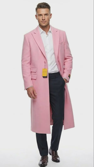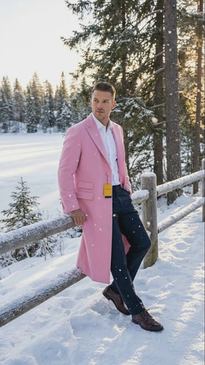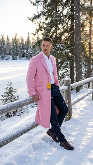 Make a bold and refined statement with this Men’s Pink Wool Blend Long Overcoat, crafted for modern style and seasonal comfort. The soft pink tone delivers a standout look while maintaining a clean, sophisticated appearance suitable for both formal and fashion-forward styling.