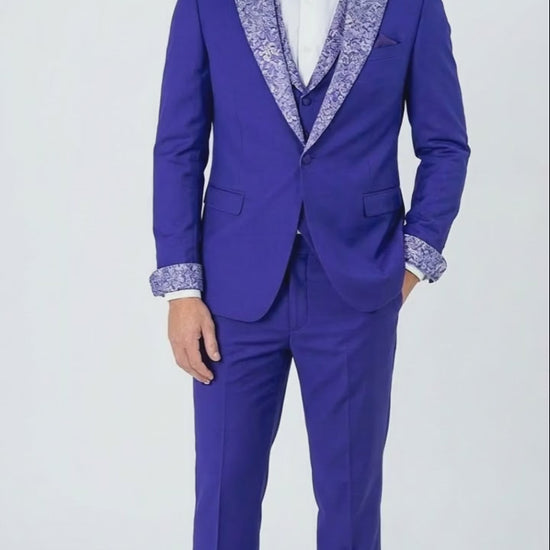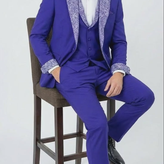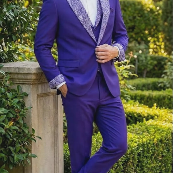 Men’s Purple and white sivler lapel Embellished Tuxedo Suit – Formal Wedding, Prom, and Gala Outfit Mardi Gras
