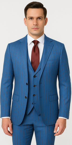 Men’s Three Button Suits - Navy Blue Pinstripe Three-Piece Suit – Classic Business and Formal Wear with Tailored Fit