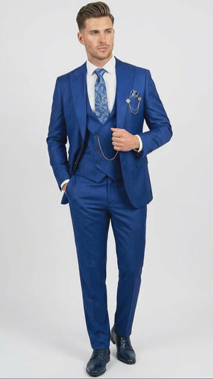 Men’s Royal Blue 3 Piece Suit Set with Vest – Formal Wedding and Party Wear Suit - Saphire Cobalt blue