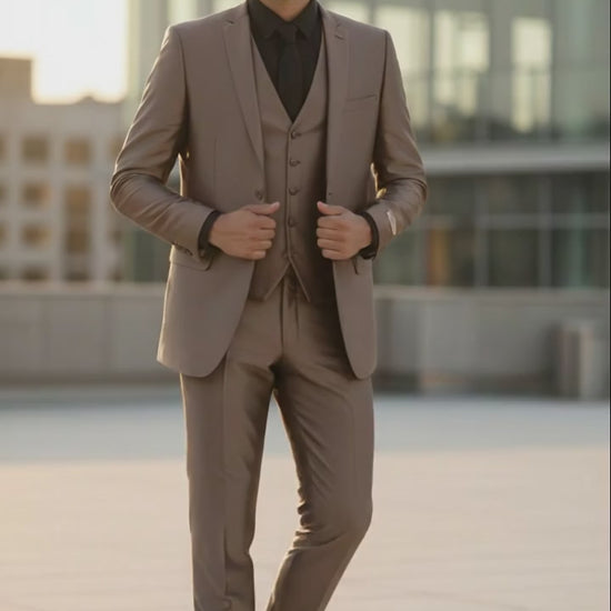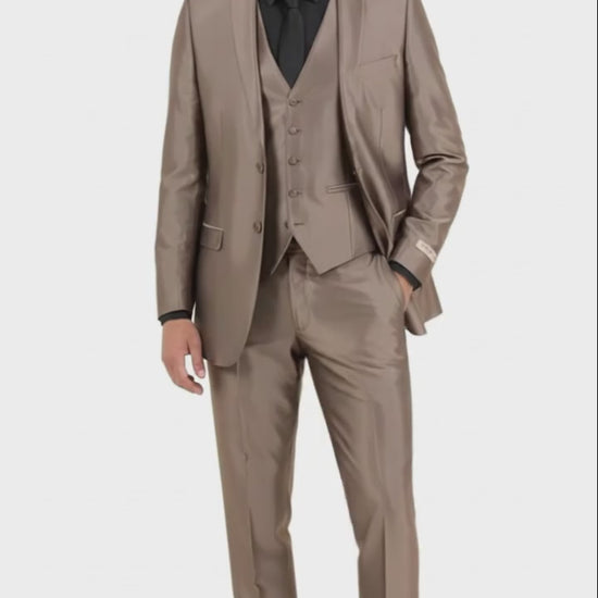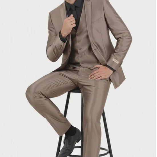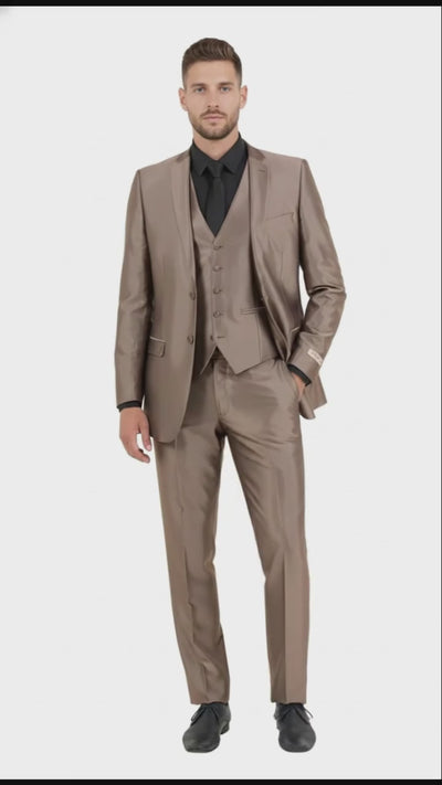 Men’s Sateen Shiny Metallic Mocca Taupe Gold Bronze 3-Piece Suit Set – Shiny Finish slim Fit Formal and Party Suit