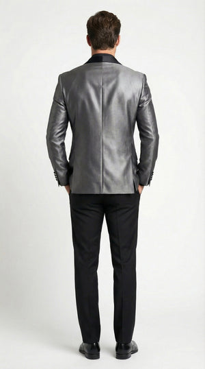 Men’s Shiny Charcoal Grey Blazer – Sharkskin Dinner Jacket Shawl Collar