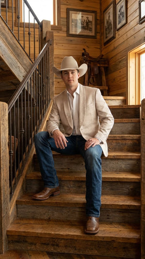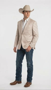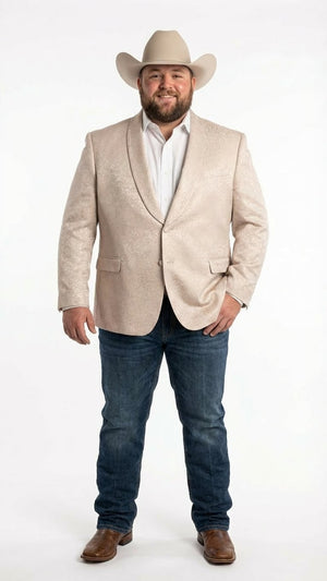 This cream paisley blazer is ideal for weddings, groom and groomsmen outfits, western-themed parties, rodeo nights, country events, and formal celebrations. Wear it with a dress shirt and cowboy boots for a polished western dress look that turns heads at every occasion.