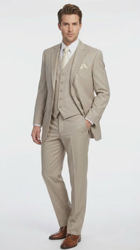 Men’s Tan Pinstripe Three Piece Suit – Classic Fit Pleated Pants Tan Sand Beige Wedding, Church Shadow Ton on Tone Business Suit for Men