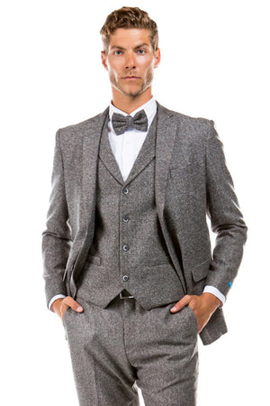 Men’s Two Button Vested Vintage Style Tweed Wedding Suit in Grey – Classic 3 Piece Formal Suit