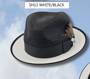 Men’s Two-Tone Black and White Fedora Hat with Feather Accent – Stylish Summer Dress Hat