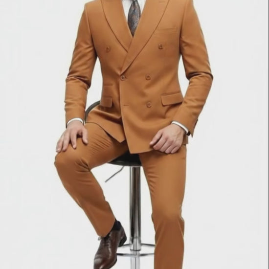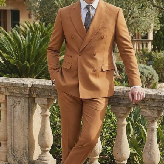Men’s Vitali Brand Rustish Orange Brown Copper Color Double Breasted Slim Fit Suit